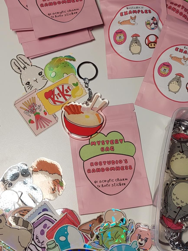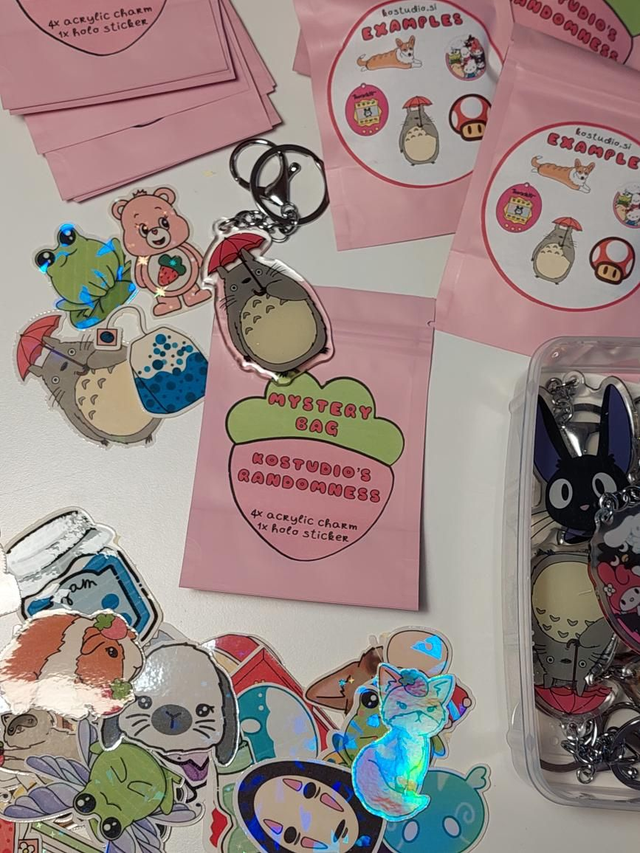 KO's Randomness with 4 holo stickers and 1 acrylic charm.