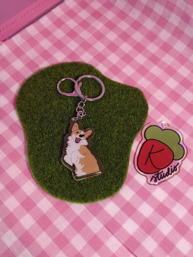 Acrylic keychain with gliter epoxy resin (6cm), digitaly drawn.