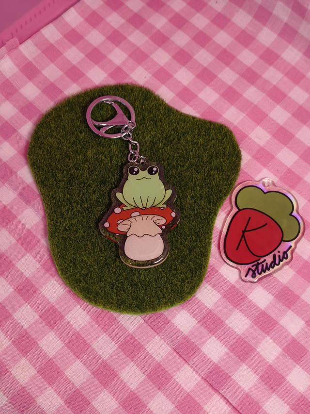 Acrylic keychain with gliter epoxy resin (6cm), digitaly drawn.