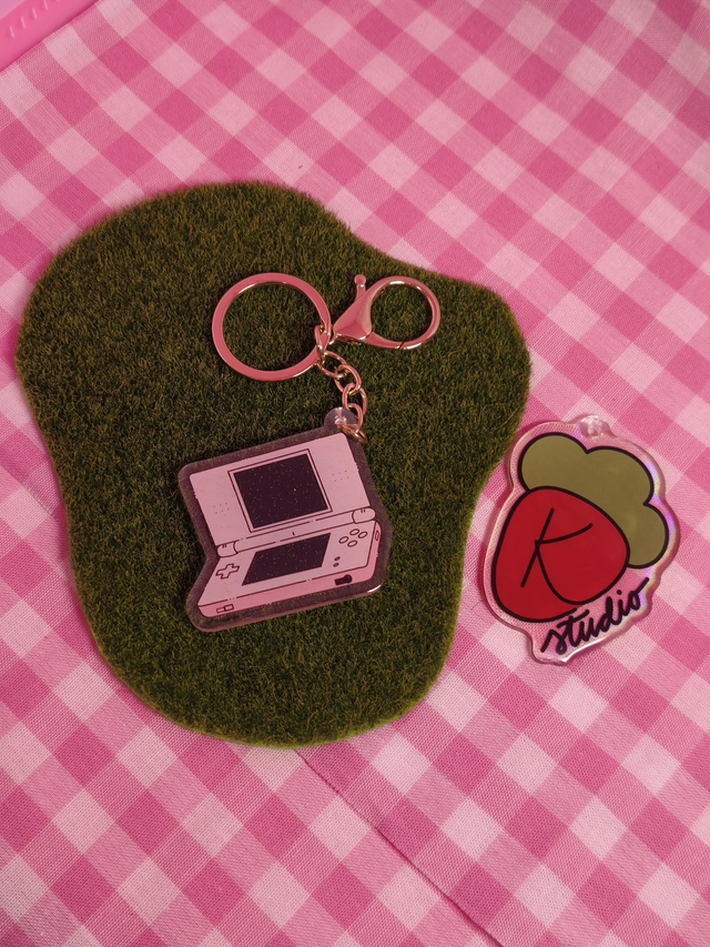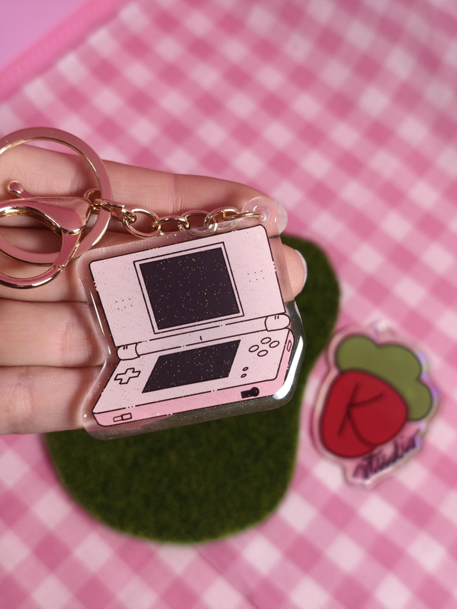 Acrylic keychain with gliter epoxy resin (6cm), digitaly drawn.