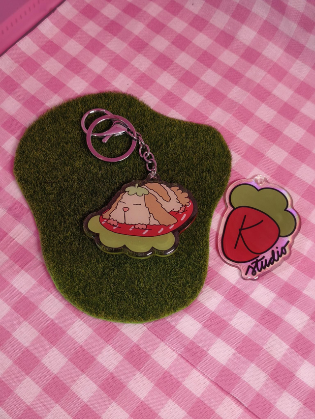 Acrylic keychain with gliter epoxy resin (6cm), digitaly drawn.