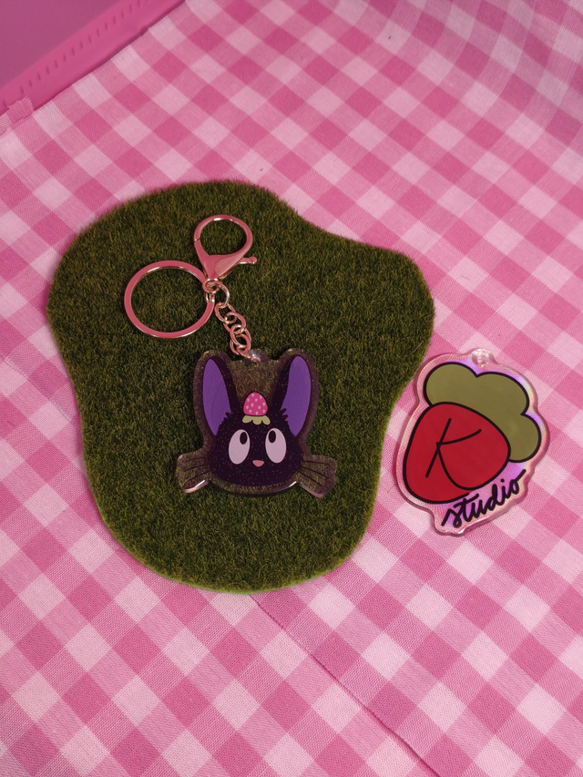 Acrylic keychain with gliter epoxy resin (6cm), digitaly drawn.