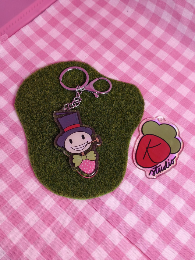 Acrylic keychain with gliter epoxy resin (6cm), digitaly drawn.