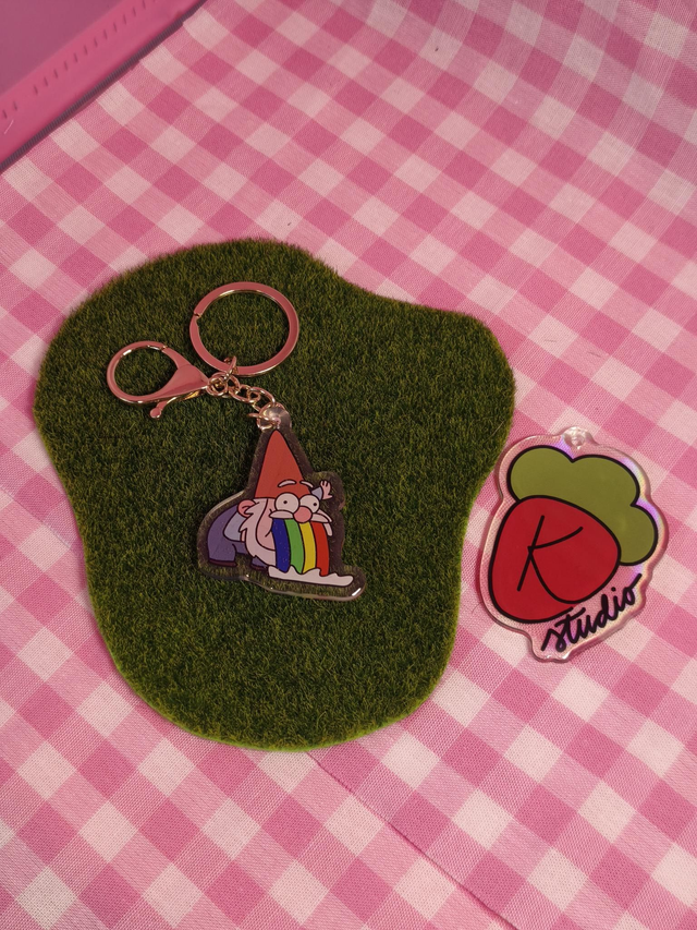 Acrylic keychain with gliter epoxy resin (6cm), digitaly drawn.
