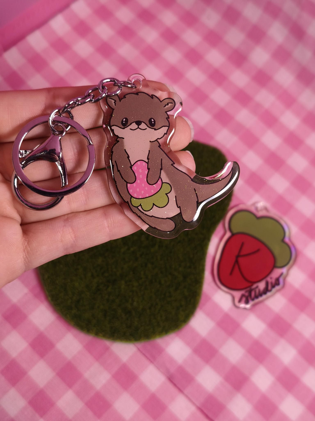 Acrylic keychain with gliter epoxy resin (6cm), digitaly drawn.