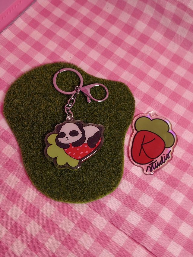 Acrylic keychain with gliter epoxy resin (6cm), digitaly drawn.