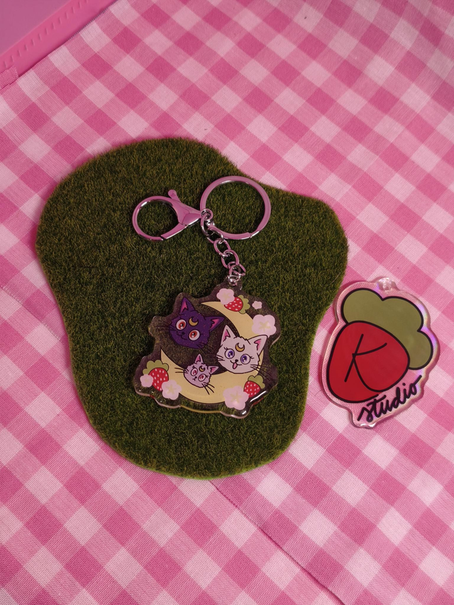 Acrylic keychain with gliter epoxy resin (6cm), digitaly drawn.